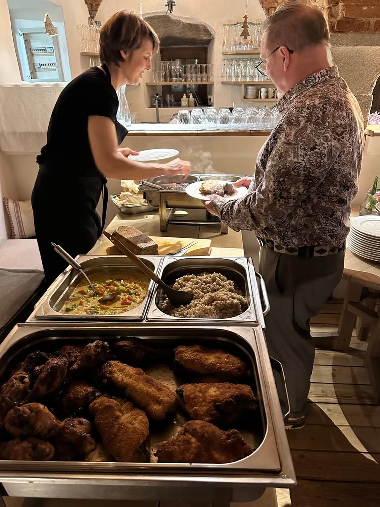 Zum Hauptgang ging es dann ans Buffet: eine tolle Auswahl, die keine Wünsche offenließ und schnell klar gemacht hat – hier geht heute definitiv niemand hungrig nach Hause. Auch beim Dessert wurde noch einmal ordentlich aufgefahren: süße Highlights ebenfalls vom Buffet, perfekt zum Abschluss.